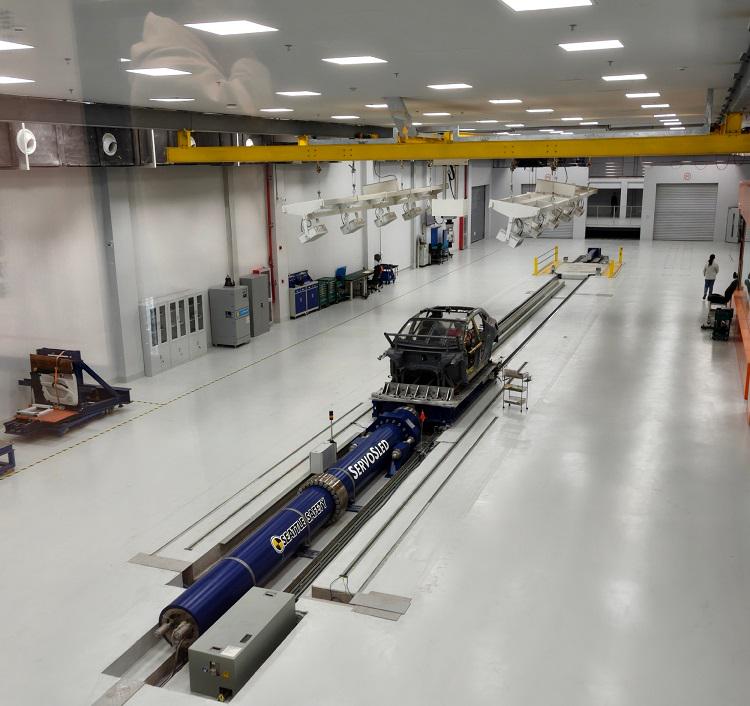 中心内长达293.39米的“巨匠最长室内汽车碰撞测试跑说念”提供了前所未有的测试要求。与传统碰撞测试比较,这条跑说念可罢了更高初速率和可调延缓度,提拔无级角度对碰、翻腾及预制动等复杂历练。